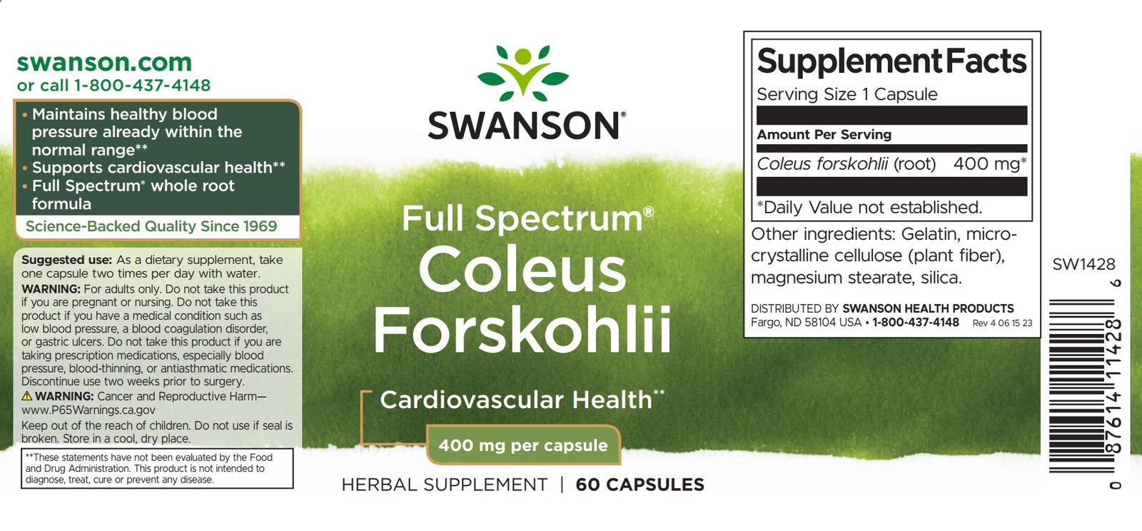| Coleus forskohlii (root) | 400 mg | * |