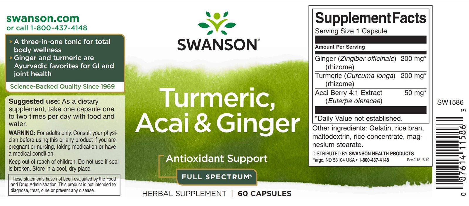 This unique herbal blend delivers a wide range of benefits for the whole body, from the GI tract to the joints to the cardiovascular system. Traditionally used by Ayurvedic herbalists as tonics for the GI tract and joint health, ginger and turmeric rhizomes are rich in natural antioxidant compounds that protect tissues throughout the body against free-radical damage. The bioflavonoids found in acai berry enhance this antioxidant activity even further, providing outstanding all-natural support for total body wellness.