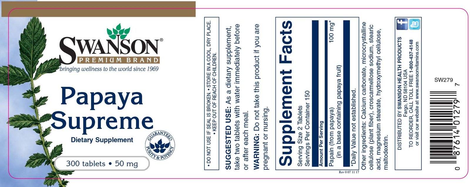 Get high-powered support for protein digestion with Swanson Papaya Supreme! Papaya is more than just a popular tropical fruit, it’s a source of papain, a natural enzyme that helps break down complex proteins into simple amino acids for easy assimilation. Papaya Supreme provides a potent 50 mg of papain in each tablet.
