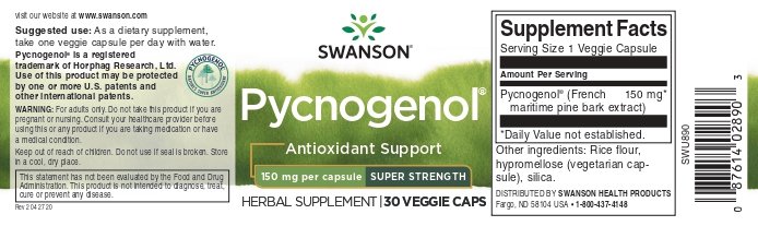 As scientists learn more and more about how we age, one thing has become clear: a major contributor to the aging process is oxidative damage to cells caused by unstable molecules known as free radicals. This occurs in tissues throughout the body, including the skin, joint tissues, blood vessels and even the brain. The body’s main defense against the potential damage posed by these molecules is provided by antioxidants, compounds that deactivate free radicals, rendering them harmless. Some of the most powerful antioxidants known to science are found in a plant extract known as Pycnogenol. Pycnogenol is extracted through a patented process from the bark of French maritime pine trees grown exclusively in the unspoiled Landes de Gascogne forest of southwest France with no pesticides or herbicides. With the mild climate of the region, the bark of these trees is not subject to wide seasonal variations in growing conditions, which makes it an ideal source for botanical extraction because its active phytochemical constituents are found in consistent concentrations at their programmed, synergistic ratios. That means Pycnogenol gives you reliable antioxidant protection you can count on, every time. Swanson Super Strength Pycnogenol is our most potent Pycnogenol supplement ever, delivering an incredible 150 mg in each veggie capsule to give your mind and body an unprecedented level of healthy aging antioxidant defense.