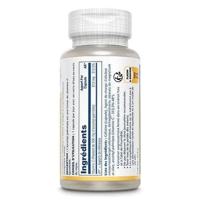 Indications : L’Ascorbyl Palmitate (vitamine C estérifiée) est une forme liposoluble de vitamine C. Elle a de puissantes propriétés antioxydantes, aide à maintenir le tissu conjonctif normal, peut réduire le risque de certains cancers ainsi que les maladies coronariennes, et aide à la cicatrisation.